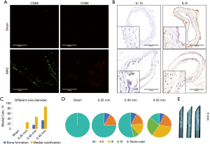 Concurrently, macrophages exacerbate arterial calcification by phagocytosing calcific debris and releasing proinflammatory cytokines such as IL-1β and IL-18. This response perpetuates vascular injury and calcification, while chronic inflammation induces oxidative stress, further damaging the endothelium (30,31). In our model, macrophages infiltrating the damaged vascular wall exhibited a pro-inflammatory phenotype, marked by elevated release of M1-associated cytokines, including IL-1β and IL-6 (Figure 3A,3B). This suggests a polarization toward an M1-like state, potentially aggravating vascular injury. It should be noted, however, that definitive characterization of macrophage polarization will require future analysis of specific surface markers [e.g., inducible nitric oxide synthase (iNOS), cluster of differentiation 206 (CD206), arginase-1]. These results suggest that our model can effectively simulate the pathogenic process of clinical vascular calcification.