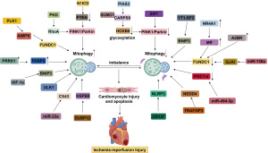 | FUNDC1 | Mediates mitophagy, enhancing mitochondrial clearance and improving cardiac recovery post-MI | Promotion | (35) |