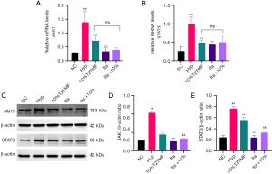ELISA analysis demonstrated that pretreatment with 10% TZTMF-treated serum significantly attenuated the hypoxia-induced inflammatory response and suppressed proliferation compared with the Hyp group (Figure 4F,4G). Consistent with prior studies, itacitinib alone reduced inflammation but did not significantly inhibit proliferation (28). No significant difference was observed between the TZTMF (10%) and TZTMF + itacitinib groups (P>0.05), indicating a shared mechanistic pathway.