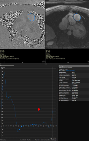 MRI offers considerable potential in evaluation of CTEPH, although this has not yet translated into clinical practice. Currently, MRI is the gold standard for evaluation of right ventricle (RV) function and morphology. Phase contrast-MRI (PC-MRI) velocity mapping of PA provide valuable insights into pulmonary flow and vascular resistance and are proven biomarkers for noninvasive monitoring and for assessment of response to therapy. Systolic notching along the time course of mean pulmonary velocity is a known finding in PH and Hardziyenka et al. proposed that an echocardiographic timing of this notch can provide insights into the presence of SVD (25); the later the notch in systole, the greater the downstream resistance. Similar such findings can be assessed with two-dimensional (2D) PC-MRI and can be used to assess response to therapy (26) (Figure 5). Newer tools such as four-dimensional (4D) flow MRI allow comprehensive assessment of PA flow dynamics. Novel markers of increased PA pressures and PVR such as vortex, pulsed-wave velocity and wall shear stress (WSS) can provide unique noninvasive insights into the hemodynamics and the status of underlying microvasculature (27). Dynamic contrast enhanced MRI and DECT have been demonstrated to have comparable assessments of perfusion defects and similar abilities to detect perfusion improvement following PTE (28). There is a lot of interest in noninvasive assessment of lung perfusion and ventilation using techniques such as phase resolved functional lung (PREFUL) MRI. In one study on 42 CTEPH patients, quantitative parameters obtained using PREFUL MRI correlated with hemodynamic parameters highlighting the potential benefits (29). While these techniques are promising and might provide valuable clues to the presence of SVD, technical challenges remain and most of these tools are still in their nascent stage. Further research and prospective trials might shed light on the future of MRI in assessment of SVD.
