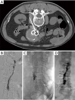 - Yang RY, Tan KT, Beecroft JR, et al. Direct sac puncture versus transarterial embolization of type II endoleaks: an evaluation and comparison of outcomes. Vascular 2017;25:227-33. [Crossref] [PubMed]