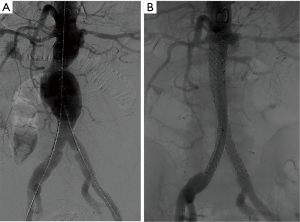 - Jackson RS, Chang DC, Freischlag JA. Comparison of long-term survival after open vs endovascular repair of intact abdominal aortic aneurysm among Medicare beneficiaries. JAMA 2012;307:1621-8. [Crossref] [PubMed]
